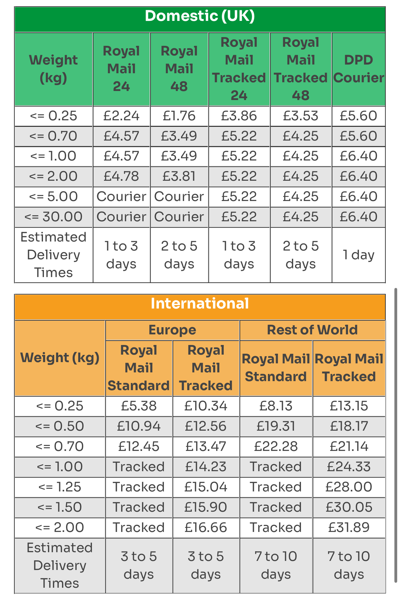 12.1 We use weight-based shipping, this is so that we can calculate the cost to you based on the approximate weight of the garments in your orders. Please see our shipping prices below: